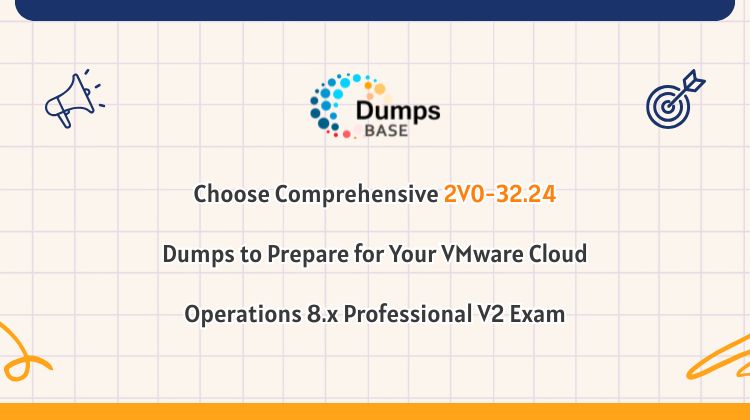 DumpsBase offers the latest VMware 2V0-32.24 dumps in both the PDF format and practice test software to help you master the VMware Cloud Operations 8.x Professional V2 exam content and boost your chances of success on the first attempt.