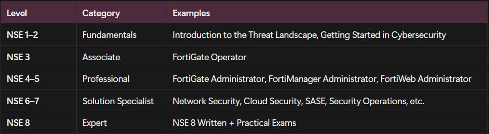 We must note that Fortinet is restructuring the NSE 1–8 certification framework to enhance exam-level progression and update the NSE tracks, effective October 15, 2025. The main goals are: