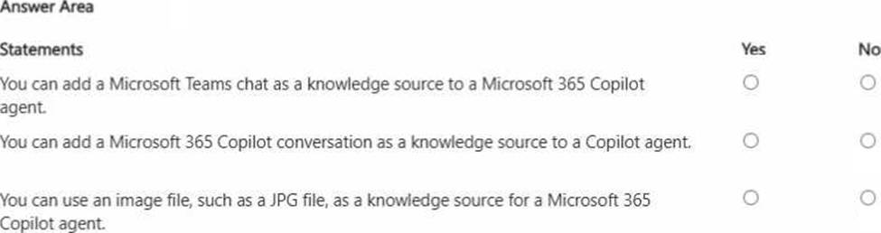 18. You are creating a custom analytics agent in the Microsoft 365 Copilot app. The agent will use Microsoft Excel files that contain sales data as knowledge.