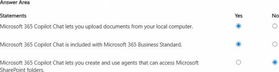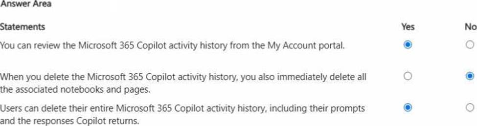 For each of the following statements, select Yes if the statement is true. Otherwise, select No. NOTE: