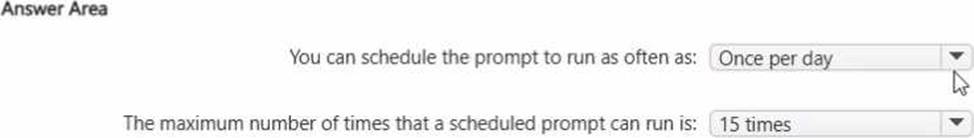 What are two limitations of prompt scheduling in Microsoft 365 Copilot? To answer, select the appropriate options in the answer area. NOTE: Each correct selection is worth one point.