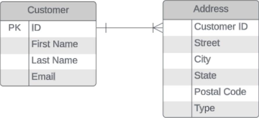 14. While modeling the real-time customer profile, it is discovered that a single customer profile can have multiple address types (Home, Office, Shipping) as seen from the customer's data warehouse.