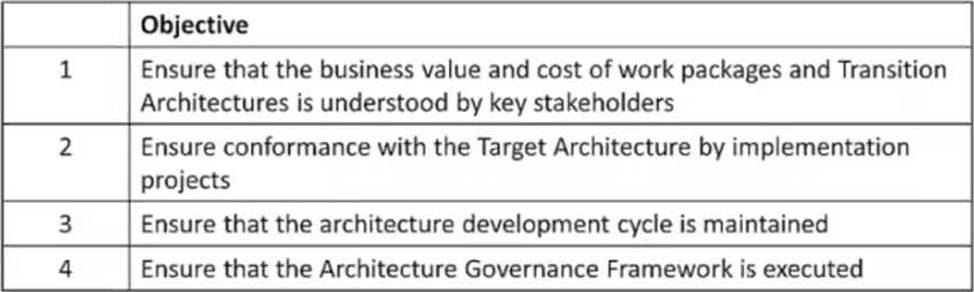 1. The_________________ensures that a project transitioning into implementation also smoothly transitions into appropriate Architecture Governance.
