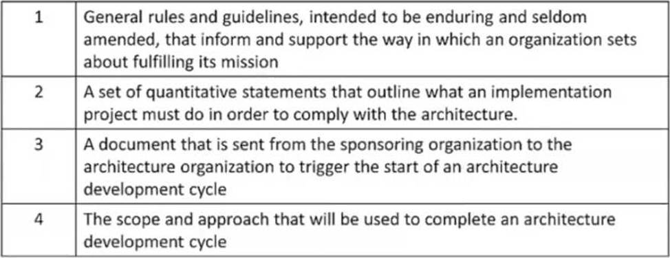 30. Which of the following describes a purpose of Architecture Principles?