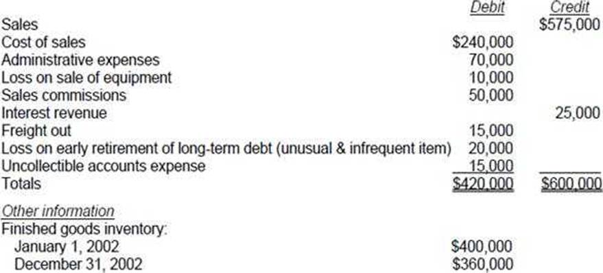Vane Co.'s trial balance of income statement accounts for the year ended December 31, 2002, included the following: