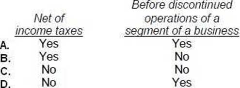 39. An extraordinary item should be reported separately on the income statement as a component of income: