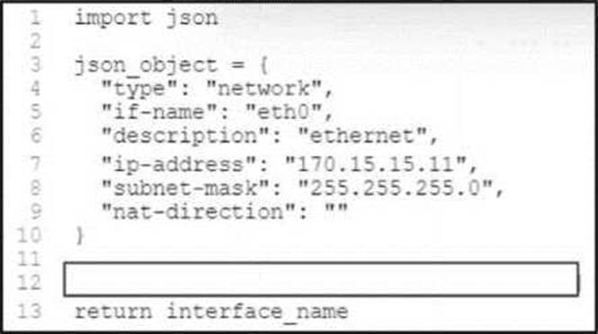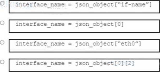 A network engineer must retrieve the network interface name from a JSON object. The engineer loads the JSON into a Python dictionary named json_object.