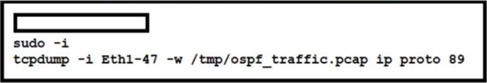 A network engineer is using tcpdump to capture a snapshot of OSPF-related traffic on a specific Cisco NX-OS switch port. For security reasons, the capture must be taken using an embedded container that is already deployed on the Cisco Nexus device.