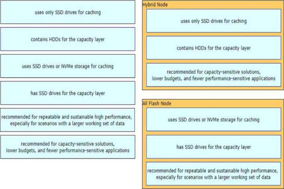 Drag and drop the hyperflex characteristics from the left onto the appropriate. HyperFlex Node types on the right. Not all options are used.
