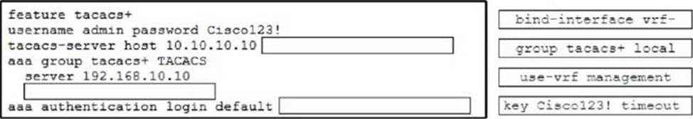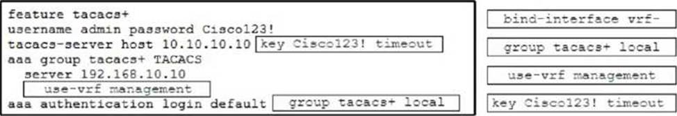 All logins to a Cisco Nexus 9000 Series Switch must pass through the TACACS+ server at IP address 192.168.10.10.