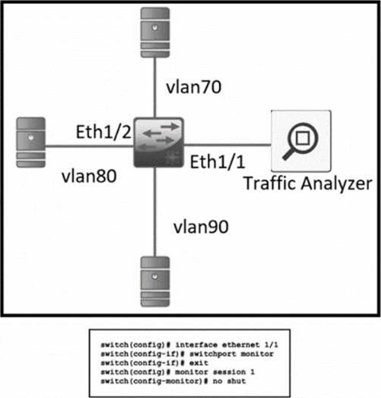A network engineer must monitor the traffic from the server on VLAN 80.