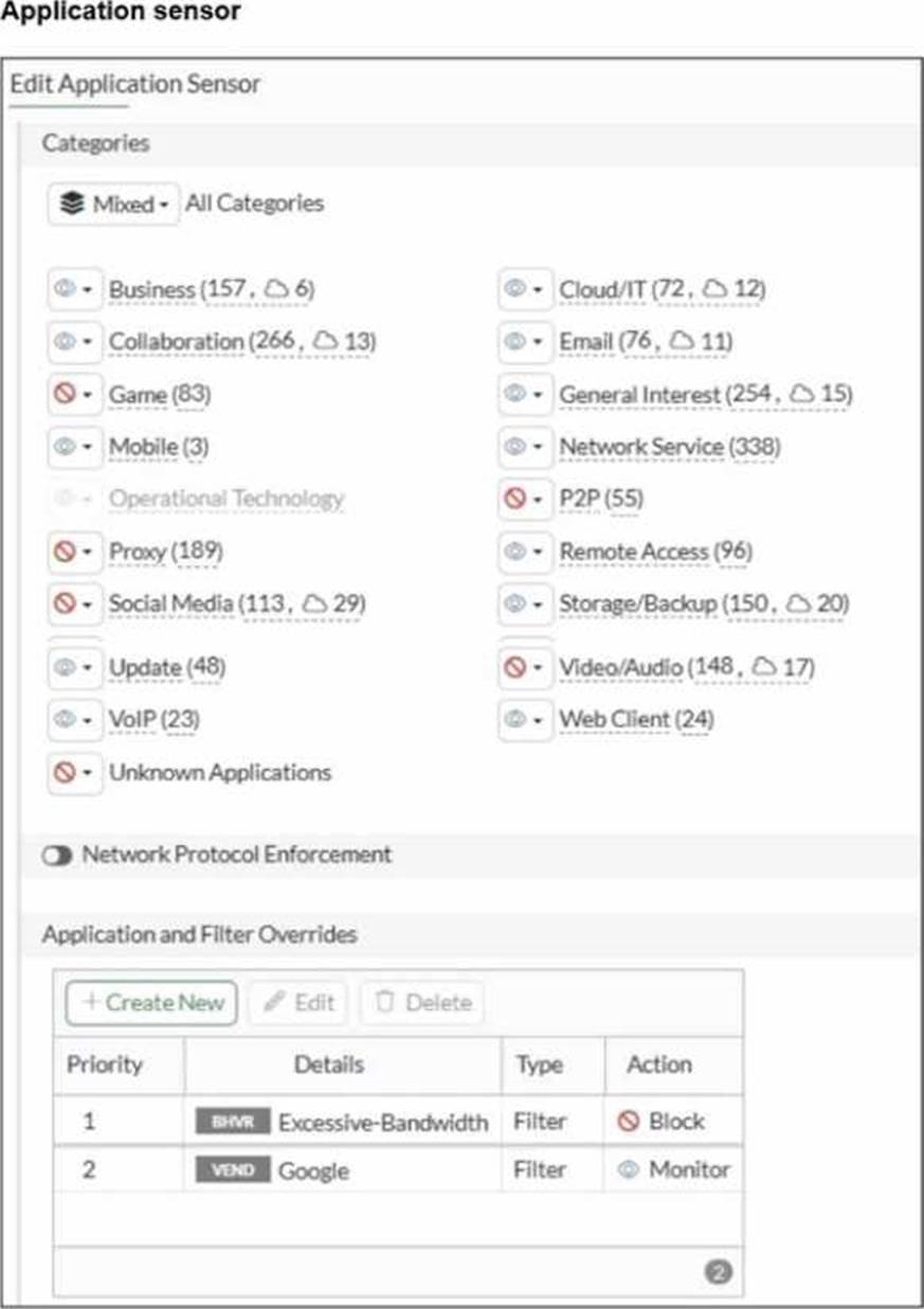 You have implemented the application sensor and the corresponding firewall policy as shown in the exhibits.