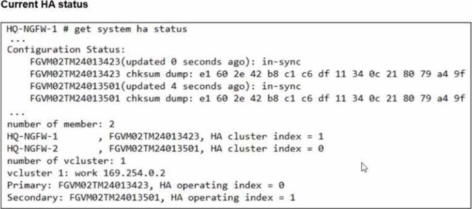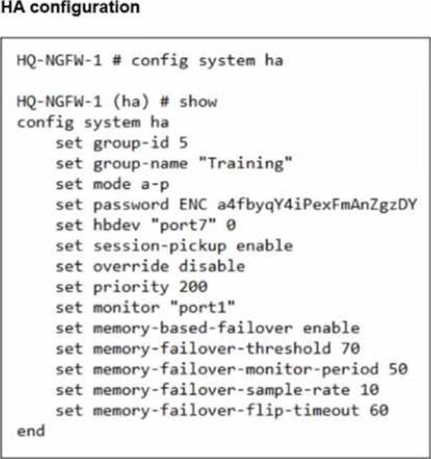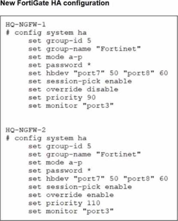 Based on the current HA status, an administrator updates the override and priority parameters on HQ-NGFW-1 and HQ-NGFW-2 as shown in the exhibits.