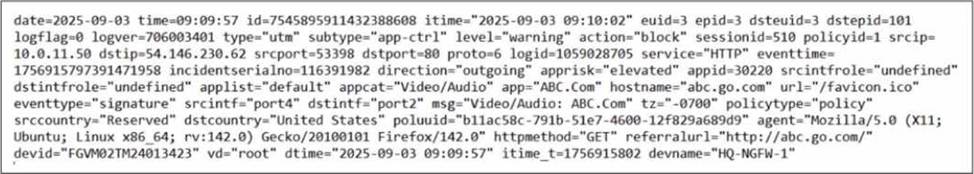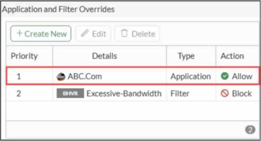 An administrator has configured an Application Overrides for the ABC.Com application signature and set the Action to Allow This application control profile is then applied to a firewall policy that is scanning all outbound traffic. Logging is enabled in the firewall policy. To test the configuration, the administrator accessed the ABC.Com web site several times.