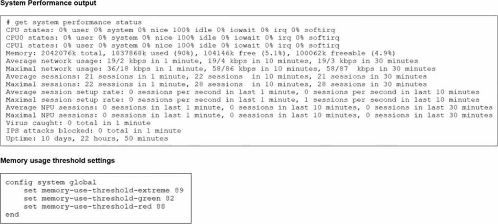 15. Which two statements are correct when the FortiGate device enters conserve mode? (Choose two.)