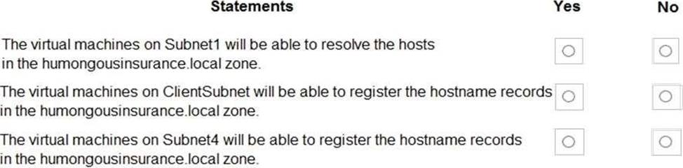 You are evaluating the name resolution for the virtual machines after the planned implementation of the Azure networking infrastructure.