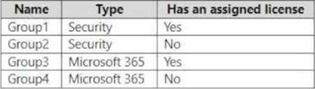 You have a Microsoft Entra tenant that contains the groups shown in the following table.