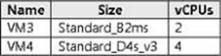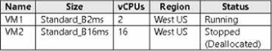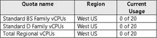 You have an Azure subscription named Subscription1 that contains the quotas shown in the following table.