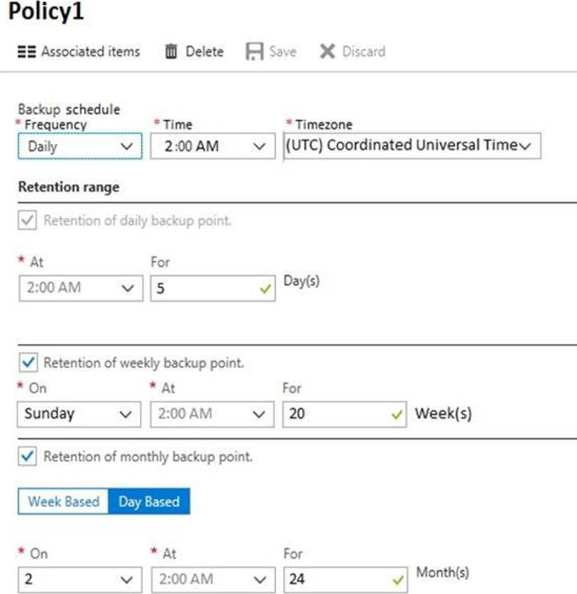 You create a backup Policy1 as shown in the exhibit. (Click the Exhibit tab.)