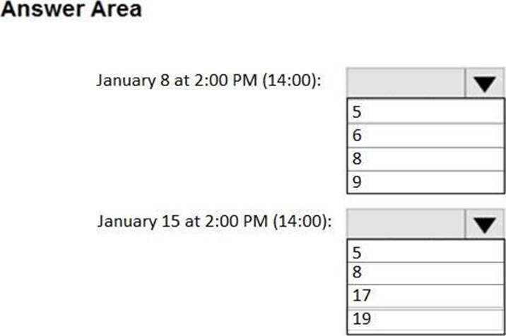 How many recovery points are available on January 8 and on January 15? To answer, select the appropriate options in the answer area. NOTE: Each correct selection is worth one point.