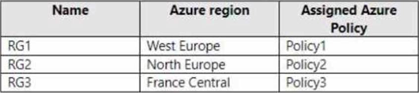 You deploy virtual machines to Subscription1 as shown in the following table.