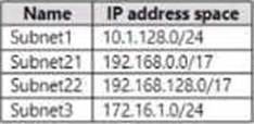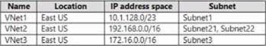 You have an Azure subscription that contains the virtual networks shown in the following table.