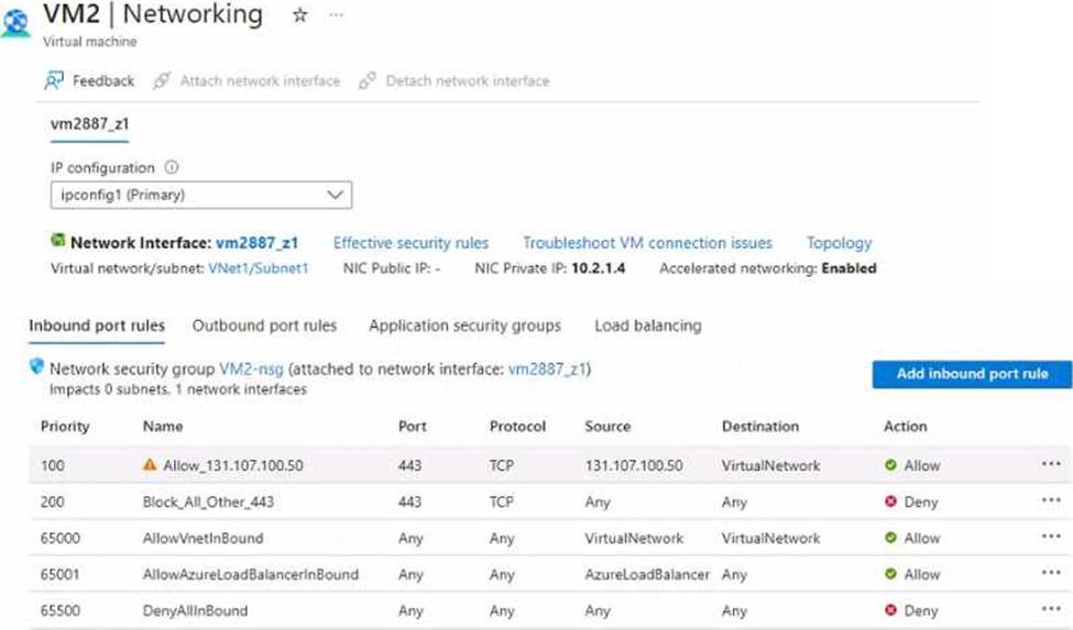 The effective network security configurations for VM2 are shown in the following exhibit.