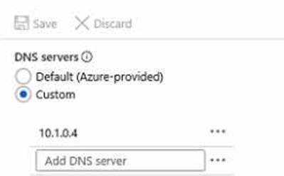 You configure the DNS server’s settings for each virtual network as shown in the following exhibit