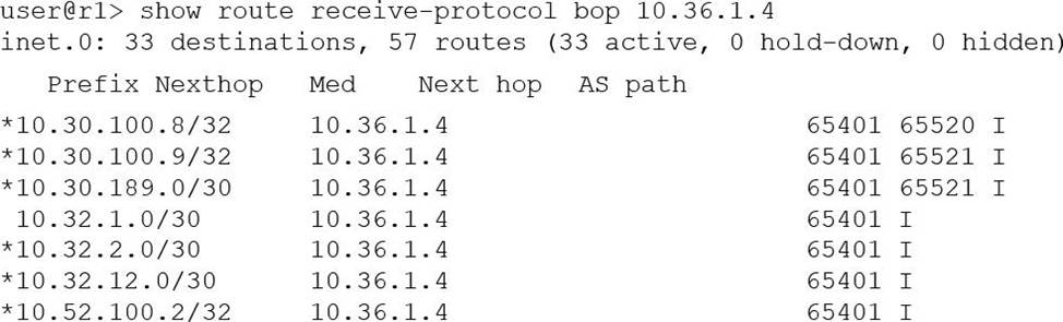 19. You are troubleshooting a BGP routing issue between your network and a customer router and are reviewing the BGP routing policies.