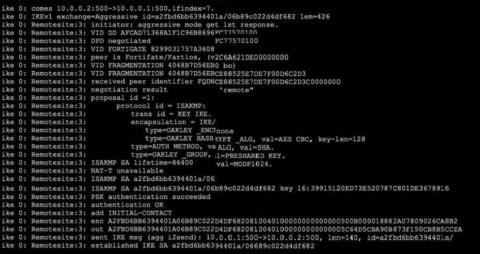 Refer to the exhibit, which contains partial output from an IKE real-time debug.