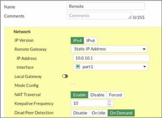 Refer to the exhibit, which contains a screenshot of some phase 1 settings.