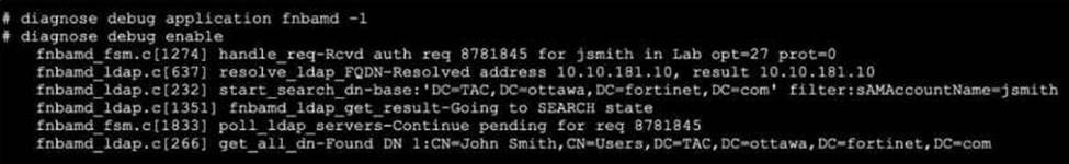 6. Refer to the exhibit, which shows a truncated output of a real-time LDAP debug.
