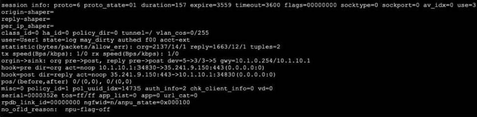 30. Refer to the exhibit, which shows the omitted output of a session table entry.