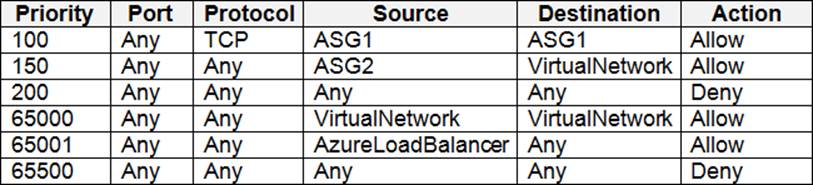 Sub2 contains the network security groups (NSGs) shown in the following table.