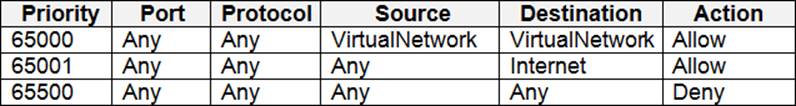 NSG1, NSG2, NSG3, and NSG4 have the outbound security rules shown in the following table.