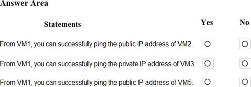 All virtual machines have the public IP addresses and the Web Server (IIS) role installed. The firewalls for each virtual machine allow ping requests and web requests.