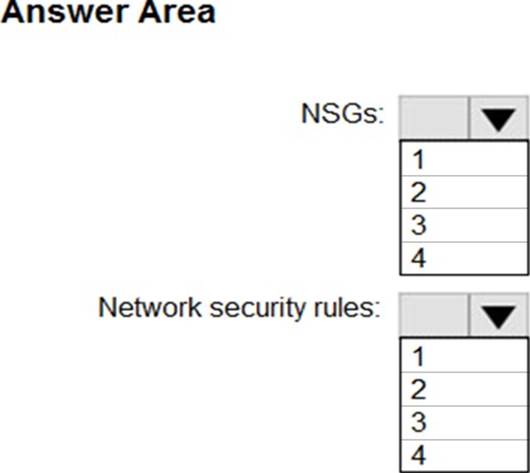 NSG1, NSG2, NSG3, and NSG4 have the outbound security rules shown in the following table.