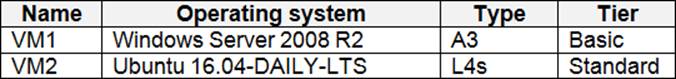 Sub2 contains the virtual machines shown in the following table.