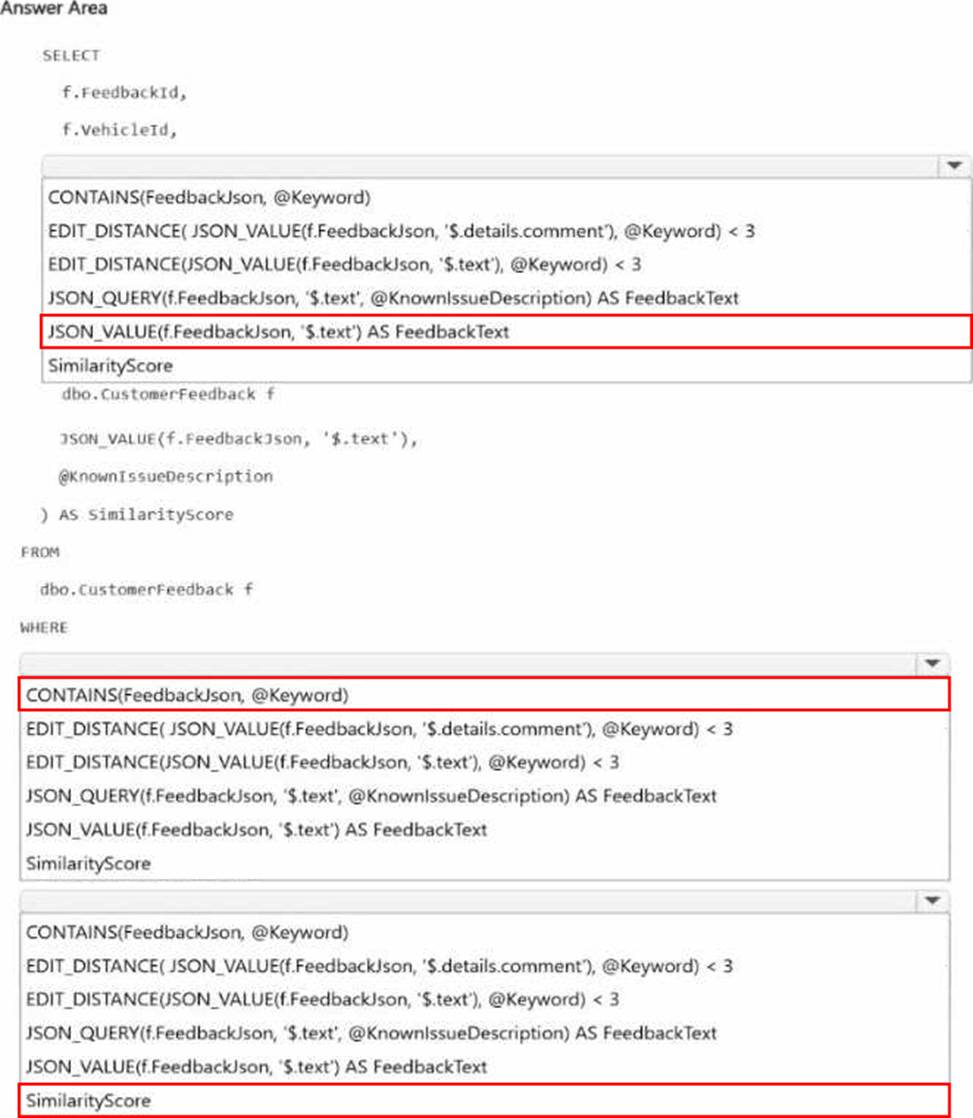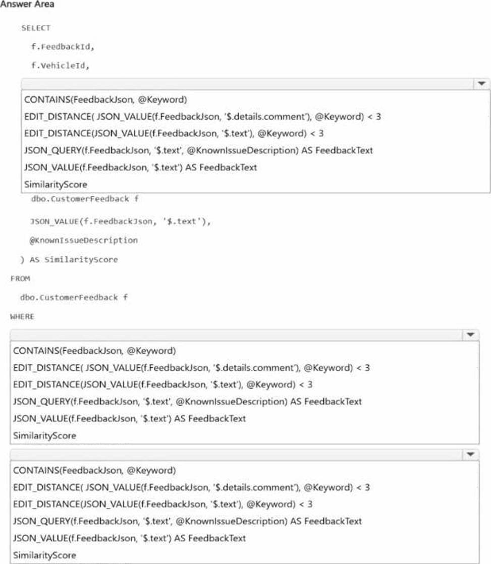 Contoso identifies the following requirements for querying data in the FeedbackJson column of the customer-Feedback table: