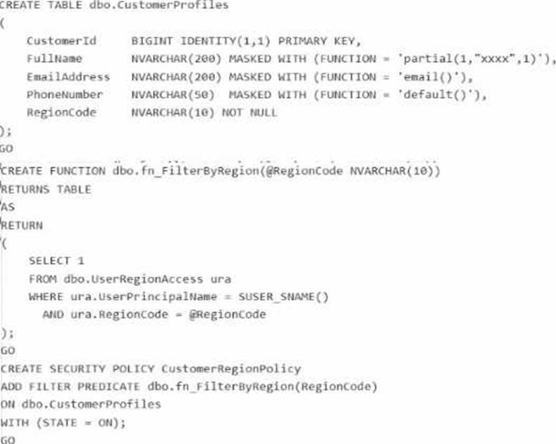 Contoso is deploying a new Azure SQL database that will become the authoritative data store for the following;