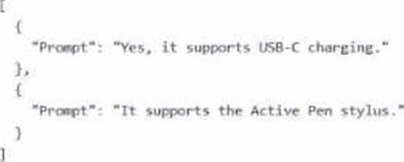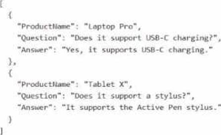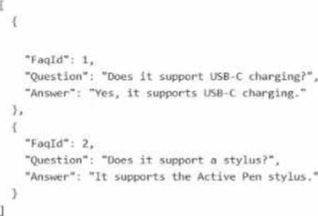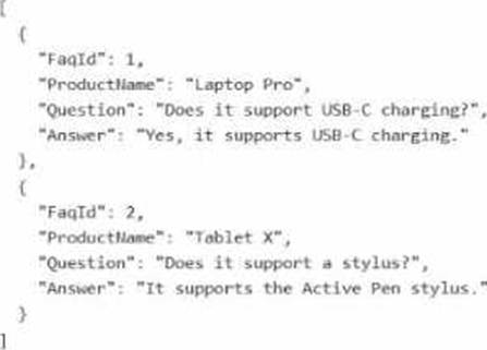 The FeedbackJson column has a full-text index and stores JSON documents in the following format.