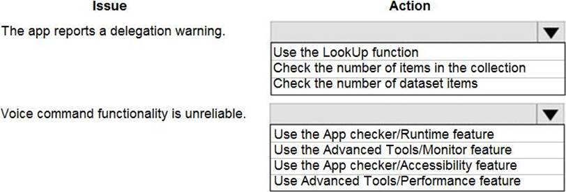 Which Power Platform component should you use for each feature? To answer, select the appropriate options in the answer area. NOTE: Each correct selection is worth one point.