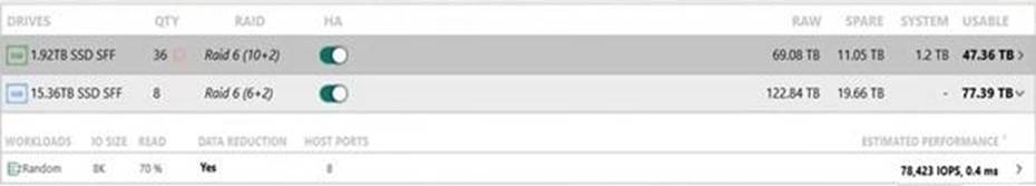 16. You have just completed a performance analysis of an HPE 3PAR StoreServ 8400 disk array with different tiers at a customer's site. After reviewing the performance metrics, you determine that they should install a new tier of SSD drives.
