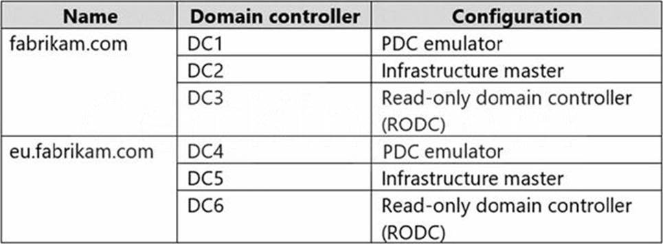 The contoso.com domain contains servers that run Windows Server 2022 as shown in the following table.