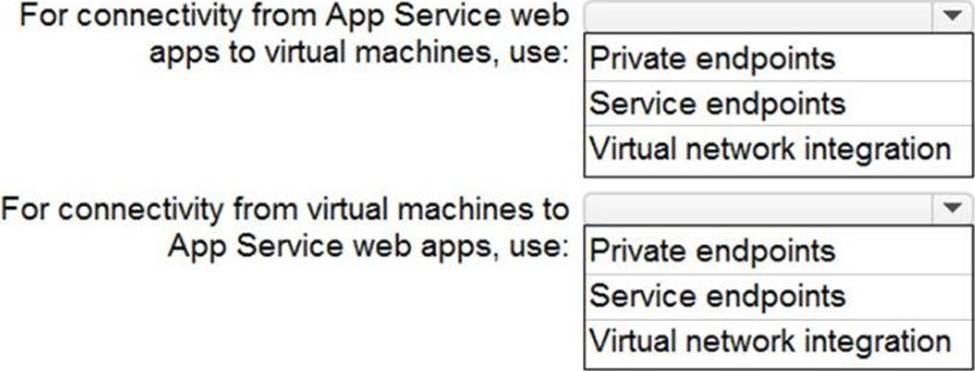 You need to recommend a strategy for App Service web app connectivity. The solution must meet the landing zone requirements.