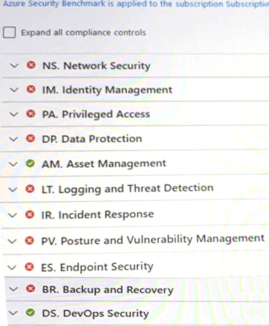 5. You have an Azure subscription that has Microsoft Defender for Cloud enabled. You are evaluating the Azure Security Benchmark V3 report.
