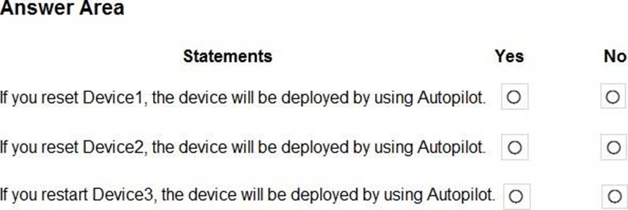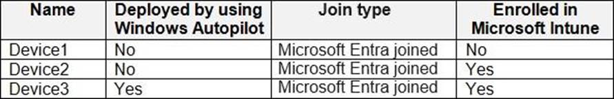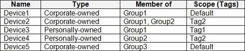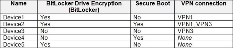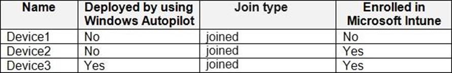 The Windows 10 devices are configured as shown in the following table.
