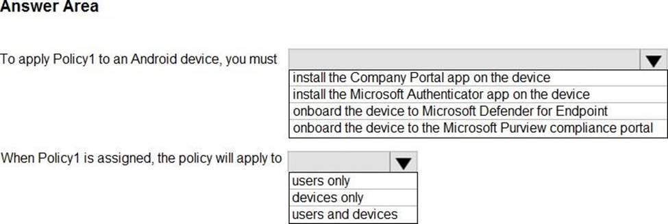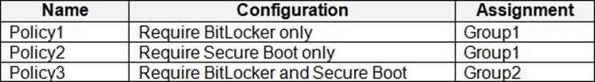 Microsoft Endpoint Manager has the compliance policies shown in the following table.