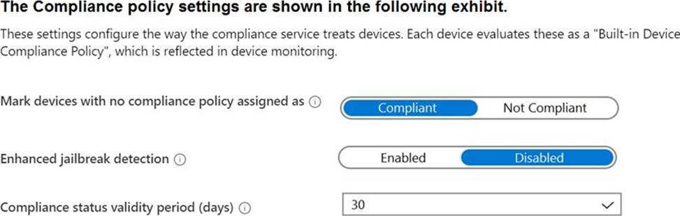 The Compliance policy settings are shown in the following exhibit.