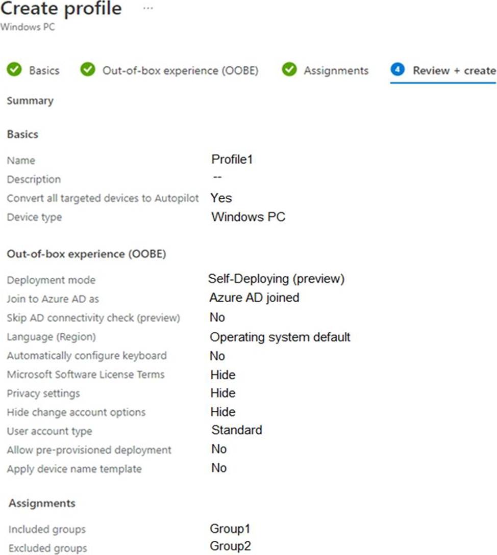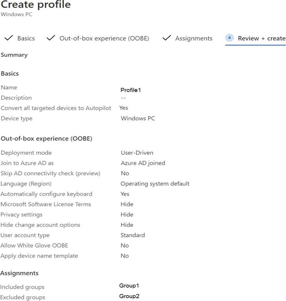 14. You have an Azure AD group named Group1. Group! contains two Windows 10 Enterprise devices named Device1 and Device2. You create a device configuration profile named Profile1. You assign Profile! to Group1. You need to ensure that Profile! applies to Device1 only.